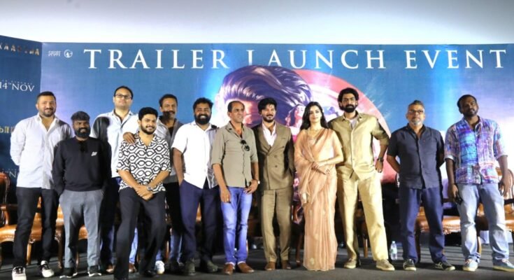 ஸ்பிரிட் மீட்யா மற்றும் வேஃபேரர் ஃபிலிம்ஸ் தயாரிப்பு நிறுவனத்தின் ராணா டகுபதி, துல்கர் சல்மான், பிரசாந்த் பொட்லூரி மற்றும் ஜோம் வர்கீஸ் ஆகியார் தயாரித்துள்ள திரைப்படம் ‘காந்தா’. செல்வமணி செல்வராஜ் இயக்கத்தில் நடிகர்கள் துல்கர் சல்மான், ராணா டகுபதி, சமுத்திரக்கனி, பாக்கியஸ்ரீ உள்ளிட்டப் பலர் நடித்திருக்கும் இந்தத் திரைப்படம் நவம்பர் 14 அன்று திரையரங்குகளில் வெளியாகிறது. இதன் டிரெய்லர் வெளியீட்டு விழா இன்று நடைபெற்றது.