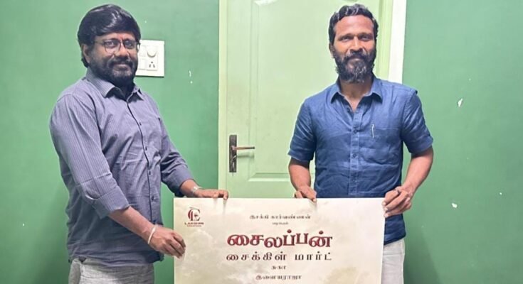 Lakshmi Creations சார்பில் இசக்கி கார்வண்ணன் தயாரிப்பில், சுகா இயக்கத்தில் கிராமத்து பின்னணியில் உருவாகியுள்ள ஃபேமிலி எண்டர்டெய்னர் திரைப்படமான “சைலப்பன் சைக்கிள் மார்ட்” படத்தின் ஃபர்ஸ்ட் லுக்கை, இயக்குநர் வெற்றிமாறன் இன்று வெளியிட்டார்.