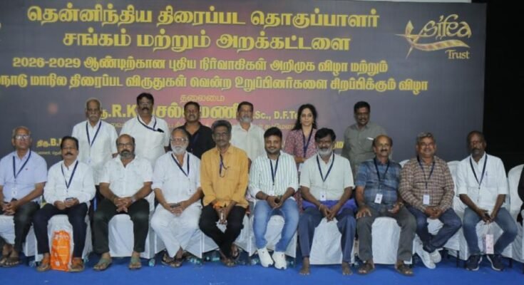 தென்னிந்திய திரைப்பட படத்தொகுப்பாளர்கள் சங்கம் 2026-2029 ஆம் ஆண்டிற்கான புதிய நிர்வாகிகள் அறிமுக விழா மற்றும் தமிழ்நாடு மாநில திரைப்பட விருதுகள் வென்ற உறுப்பினர்களுக்கு சிறப்பு செய்தல் நிகழ்ச்சி இன்று சென்னையில் பெப்சி தலைவர் ஆர்.கே. செல்வமணி தலைமையில் நடைபெற்றது. நிகழ்வில் இயக்குநர்கள் லிங்குசாமி, நித்திலன், கார்த்திக் சுப்புராஜ், எழில், தயாரிப்பாளர்கல் டி. சிவா, தனஞ்செயன், கரு. நாகராஜன் உள்ளிட்டப் பலர் கலந்து கொண்டு சிறப்பித்தனர்.