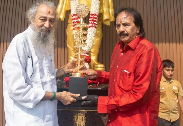 இந்த சிறப்பு விருதினை இன்று காலை நடிகர் திலகம் மணிமண்டபத்திற்கு சென்று மாலை அணிவித்து வணங்கி, மரியாதை செலுத்தினர் – அருகில் டைமண்ட் பாபு, மக்கள் தொடர்பாளர்