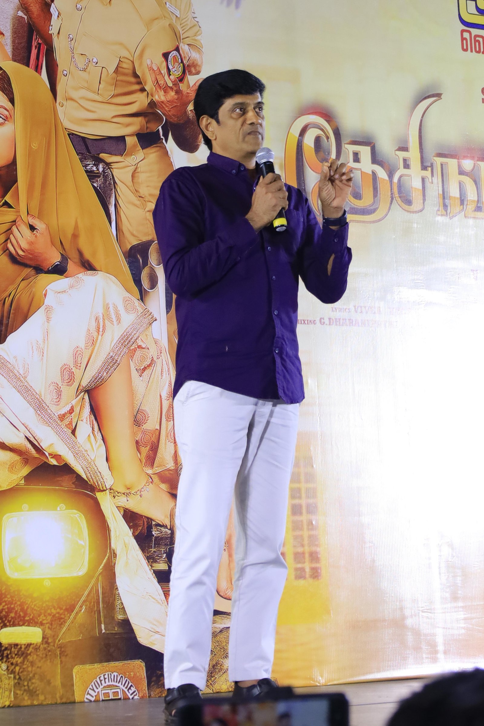 “எழில் சாருக்கு இது 25வது வருடம். விமலை இப்படி வேட்டி சட்டையில் பார்க்கும்போது அவரது இயல்பிலும் சரி உடையிலும் சரி 100% விஜயகாந்த் மாதிரி தான் இருக்கிறார். இசையமைப்பாளர் வித்யாசாகர் மெலடியில் மட்டுமல்ல, எல்லாவற்றிலும் கிங். என்னை கெடுத்ததே அவர்தான். திருப்பாச்சி படத்தில் விஜய் சாருக்கு அருமையான மெலடி பாடல் ஒன்றை உருவாக்கி அதை சொல்வதற்காக அவர் கில்லி படப்பிடிப்பில் இருந்தபோது பார்க்க சென்றிருந்தேன். அங்கே வித்யாசாகர் இசையில் அப்படி போடு போடு என்கிற பாடல் காட்சி படமாகி கொண்டிருந்தது. அதை பார்த்ததும் நம் ரூட்டை மாற்ற வேண்டும் என நினைத்து தான், மீண்டும் அந்தப் பாடலை ‘அத்த பெத்த வெத்தலை’ என்கிற குத்துபாட்டாக மாற்றினேன். என்னை குத்துப்பாட்டு இயக்குனராக மாற்றியது வித்யாசாகர் தான். அவருடைய எதிரும் புதிரும் படத்தில் இடம்பெற்ற தொட்டு தொட்டு பேசும் சுல்தானா பாடலில் கூட முதலில் சிம்ரன் நெப்போலியனும் ஆடுவதாக தான் இருந்தது அதன் பிறகு தான் ராஜூசுந்திரம் மாஸ்டர் நடித்தார். இன்றைக்கும் அந்த பாடல் ட்ரெண்டிங்கில் இருக்கிறது. ஒரு வகையில் நானும் எழில் சாரும் எதிரும் புதிருமாகத்தான் இருக்கிறோம். நான் ஸ்கிரிப்ட் தாண்டி யாரையும் பேச விட மாட்டேன். இவர் அப்படி பேசுவதற்கு சுதந்திரம் கொடுத்திருக்கிறார் என்று எல்லோரும் பேசுவதில் இருந்து தெரிந்து கொண்டேன். இந்த படம் மிகப்பெரிய வெற்றி அடைய வாழ்த்துக்கள்” என்று பேசினார்.
