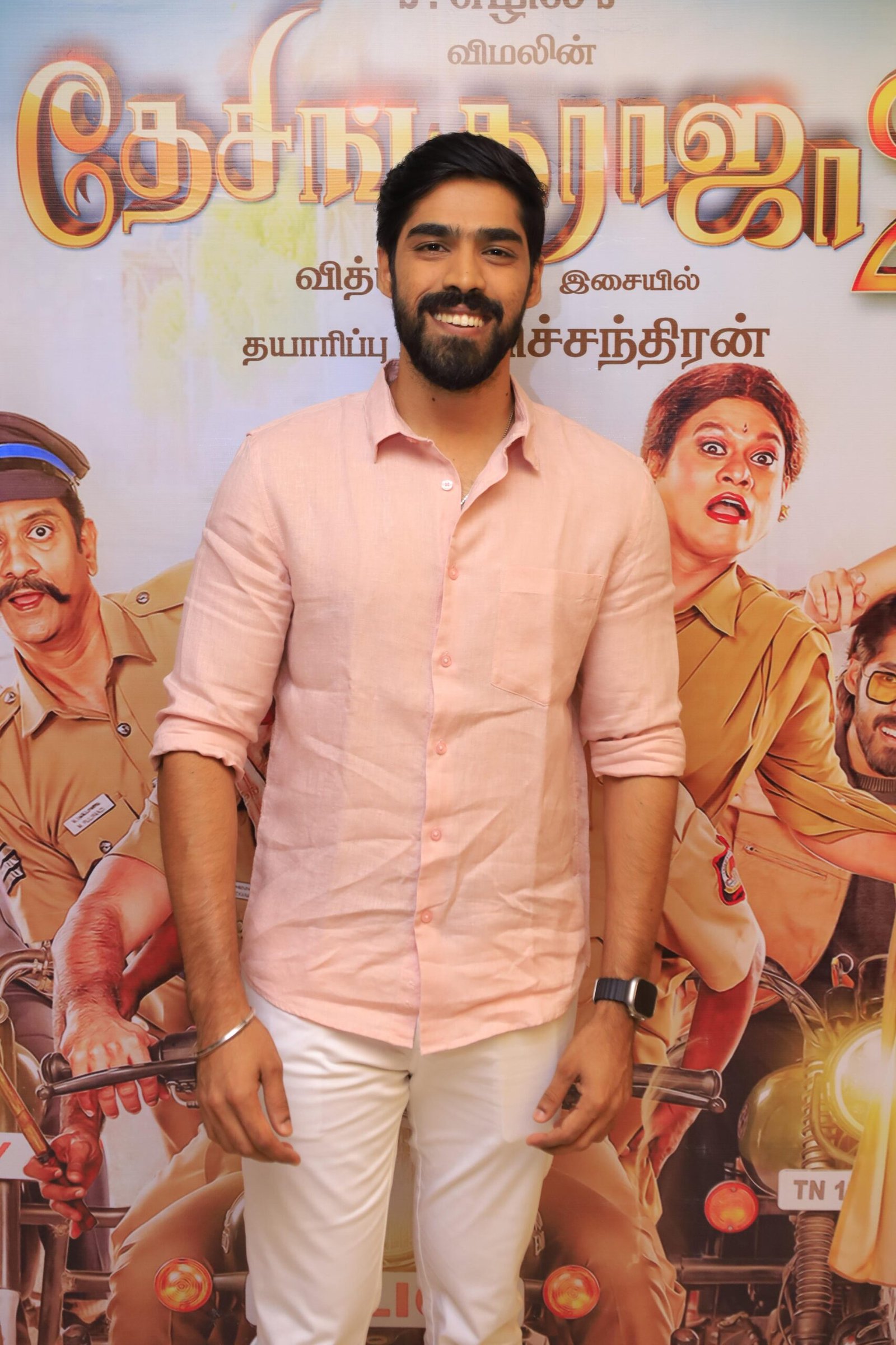 “இசையமைப்பாளர் வித்யாசாகர் இசையில் இரண்டு படங்கள் அல்ல.. இரண்டேகால் படங்கள் பண்ணியிருக்கிறேன். கில்லி படத்தில் கொக்கர கொக்கரக்கோ பாடலில் நான் ஆடியிருக்கிறேன். இயக்குநர் எழிலுடன் இது எனக்கு இரண்டாவது படம். கிட்டத்தட்ட 13 வருடங்களுக்குப் பிறகு இயக்குநர் எழிலுடன் இணைந்துள்ளேன். இதற்கு முன்பு நான் நடித்த விலங்கு என்கிற வெப்சீரிஸ், போகும் இடம் வெகு தூரம் இல்லை படம் எல்லாம் சீரியஸாக இருந்தன. அந்த சமயத்தில் தான் இயக்குனர் எழில் தேசிங்குராஜா 2 படத்திற்கு என்னை அழைத்தார். அப்படி சீரியஸாக நடித்துவிட்டு இந்த படத்தின் படப்பிடிப்பு தளத்திற்கு வந்தபோதே அவ்வளவு ரிலாக்ஸாக, ஜாலியாக இருந்தது