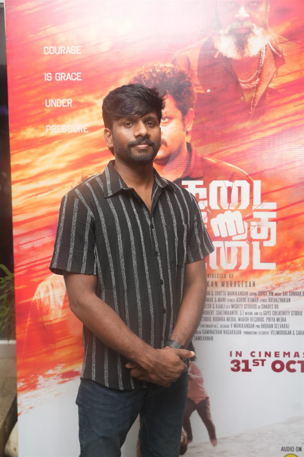 எங்களுடைய டிரெய்லர் உங்களுக்கு பிடித்திருக்குமென நம்புகிறேன். சின்ன டீம் எல்லோரும் சேர்ந்து உழைத்து இப்படத்தை உருவாக்கியுள்ளோம். நான் நடித்த திருக்குறள் படம் யூடுயூப்பில் இருக்கிறது அனைவரும் பாருங்கள். அருள்தாஸ் அண்ணன் எங்களுக்காக வந்துள்ளார். அவருடன் நான் விக்ரம் படத்தில் வேலை பார்த்தேன். அவர் நடிப்பை பார்த்து வியந்திருக்கிறேன். அவருடன் வேலை பார்த்தது சந்தோசம். கேடி என்கிற கருப்புதுரை பார்த்து, பாரி அண்ணன் அறிவழகன் சாரிடம் அறிமுகப்படுத்தினார். அப்படித் தான் இந்த வாய்ப்பு கிடைத்தது. திரைக்கதை படிக்கும்போது அத்தனை விவரங்கள் நுணுக்கமாக இருந்தது. மிக அழகாக இப்படத்தை எடுத்துள்ளார். முயன்றே எழுவோம், விழுந்தே எழுவோம் என ஒரு வரி படத்தில் வருகிறது அனைவருக்கும் ஊக்கம் கொடுக்கும் வரிகள். எல்லோரும் திரைக்கு வந்து படம் பாருங்கள் நன்றி.