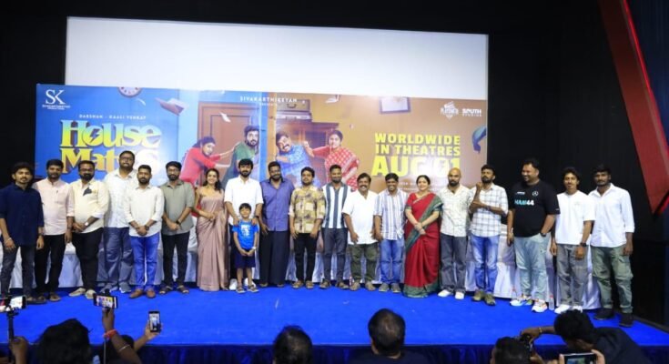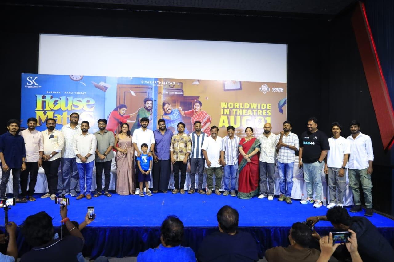சிவகார்த்திகேயன் புரொடக்சன்ஸ் வழங்கும் இயக்குநர் ராஜவேல் இயக்கத்தில் நடிகர்கள் தர்ஷன், காளி வெங்கட், ஆர்ஷா பைஜூ உள்ளிட்டப் பலர் நடிப்பில் உருவாகி இருக்கும் படம் ‘ஹவுஸ் மேட்ஸ்’. ஆகஸ்ட் 1 அன்று திரையரங்குகளில் வெளியாக இருக்கும் இந்தப் படத்தின் ப்ரீ ரிலீஸ் ஈவண்ட் நடைபெற்றது.