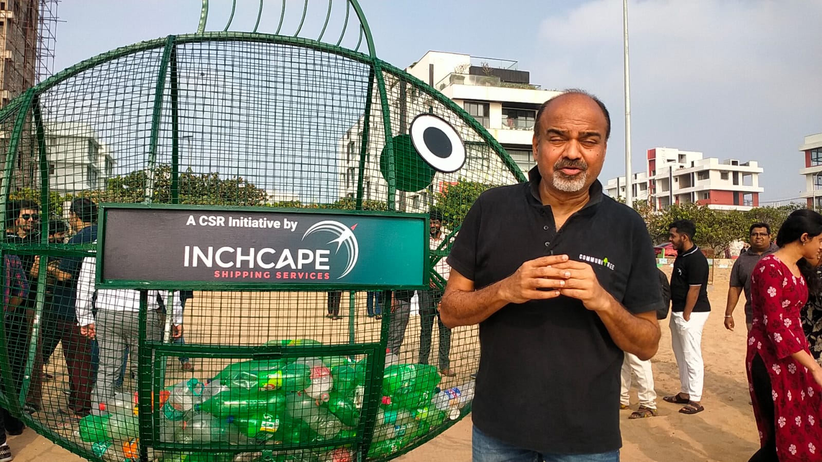 10-feet tall fish-shaped trash bin at Thiruvanmiyur beach – Inchcape’s new initiative against plastic pollution