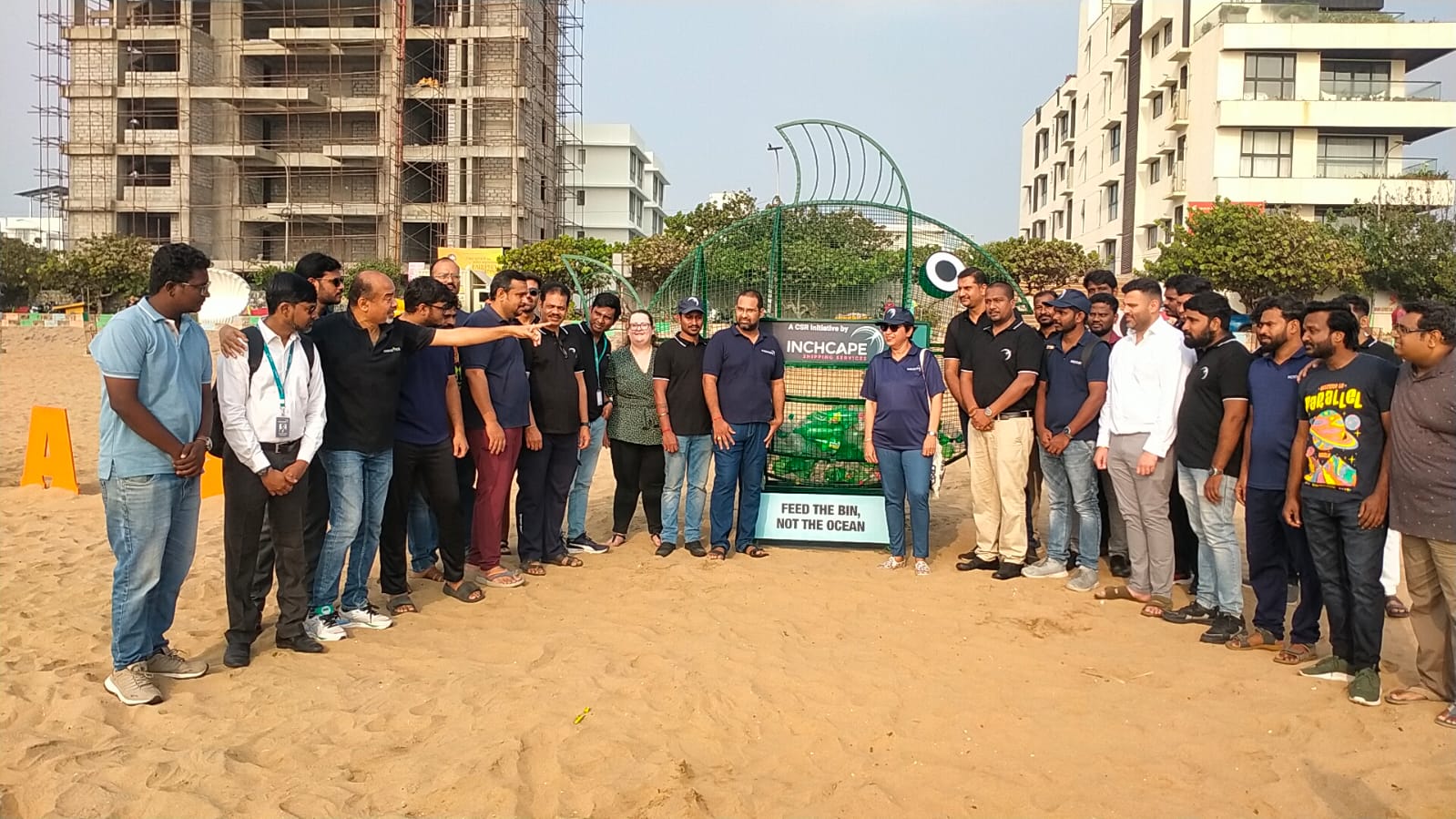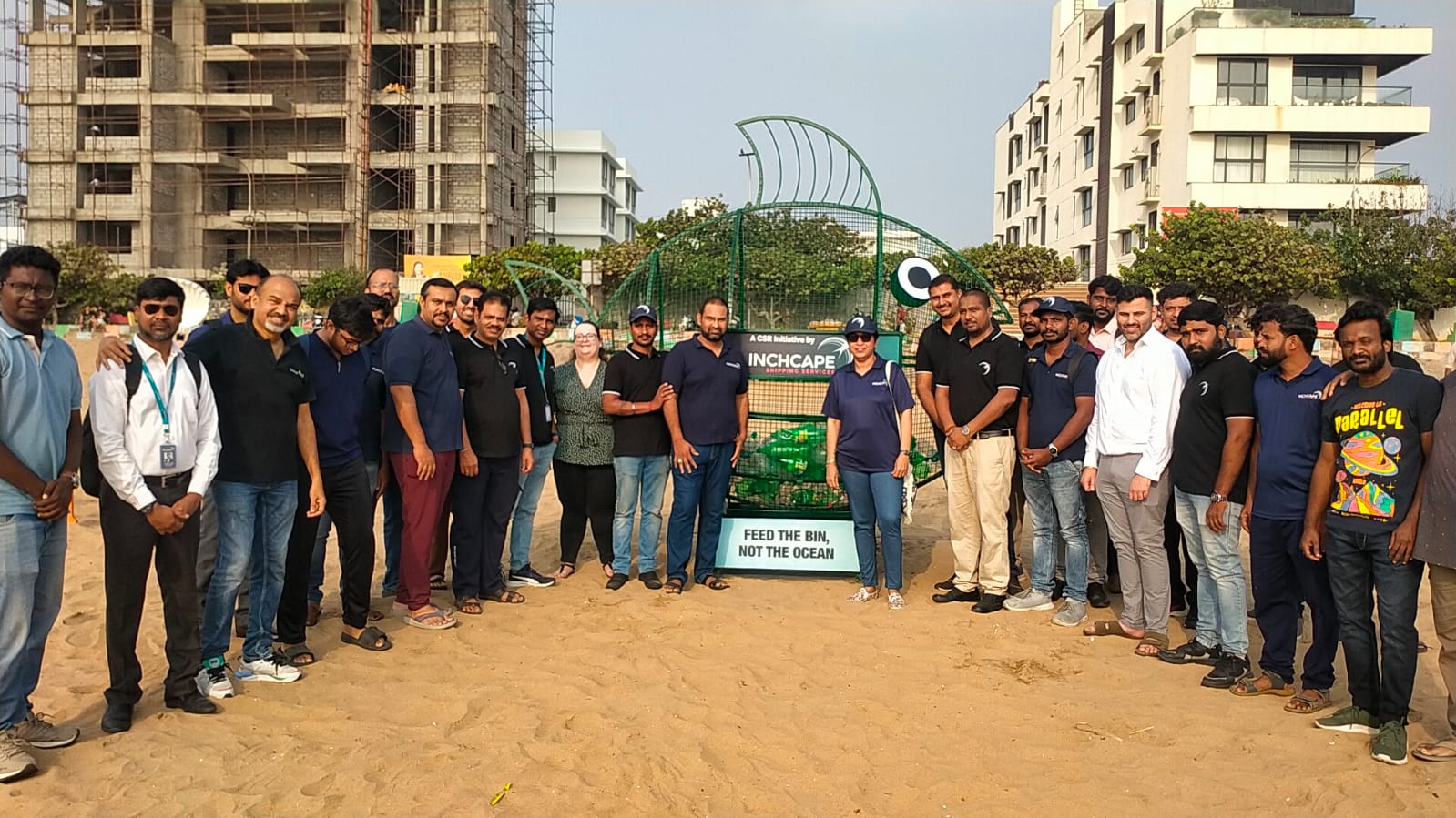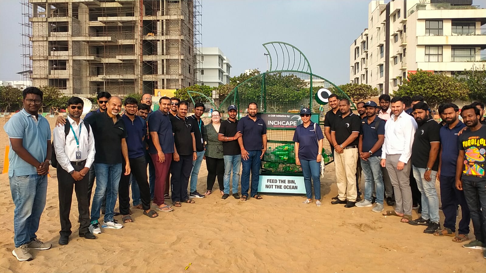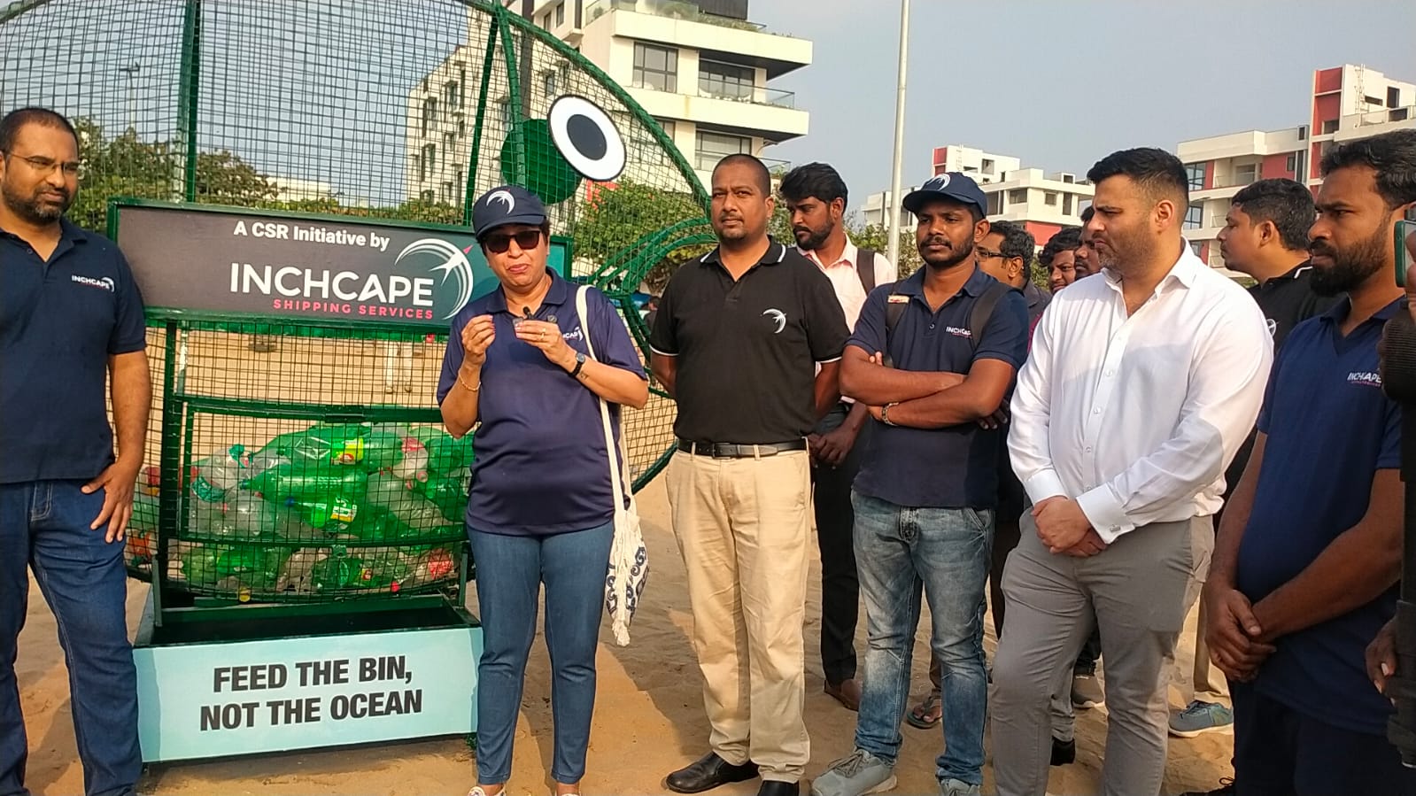 10-feet tall fish-shaped trash bin at Thiruvanmiyur beach – Inchcape’s new initiative against plastic pollution