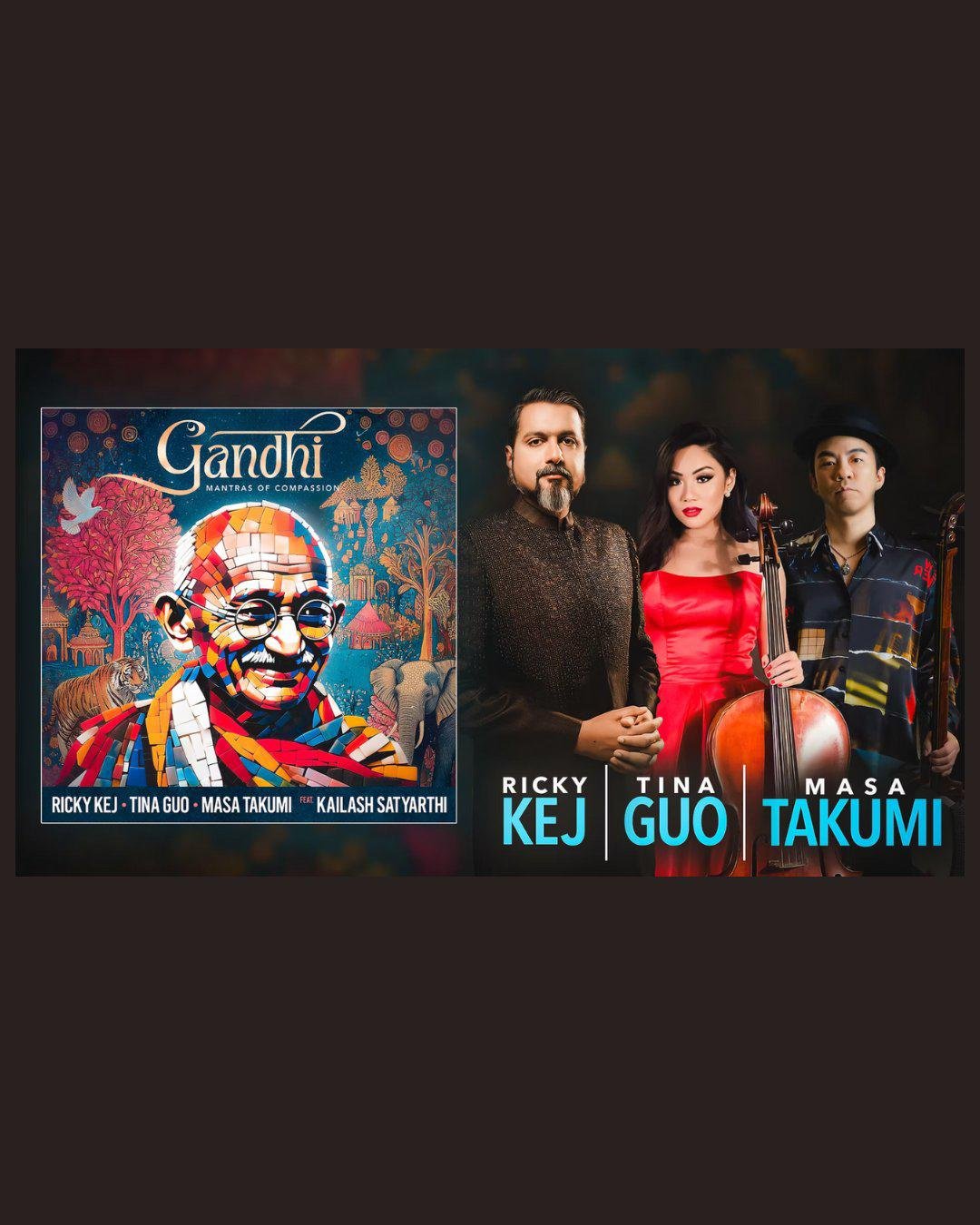 *‘GANDHI – Mantras of Compassion’ – A Transformational New Album by Ricky Kej, Tina Guo, Masa Takumi, and Kailash Satyarthi.*