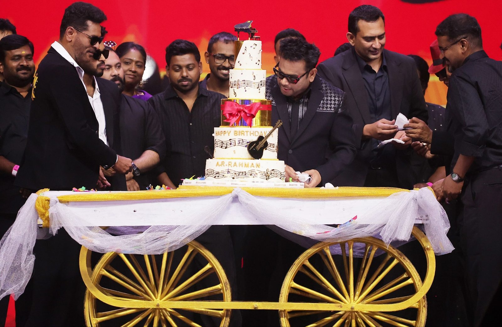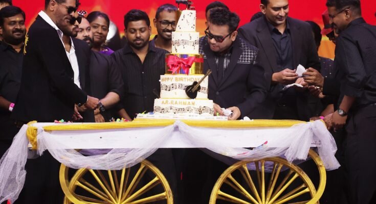 The evening concluded on a high note as *Prabhudeva brought A R Rahman back on stage*, getting the maestro to *shake a leg to the iconic ‘Mukkala’*, followed by a *grand cake-cutting ceremony** celebrating *A R Rahman’s birthday*, along with the entire cast and crew of *Moonwalk* and an audience of over *10,000 fans*.