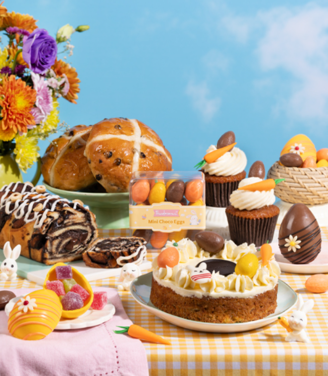 An indulgent assortment of festive specials and signature bakes, including choco eggs, mini choco eggs, cookies, crackers, brownies, and dark chocolate, ideal for larger gatherings and generous gifting.