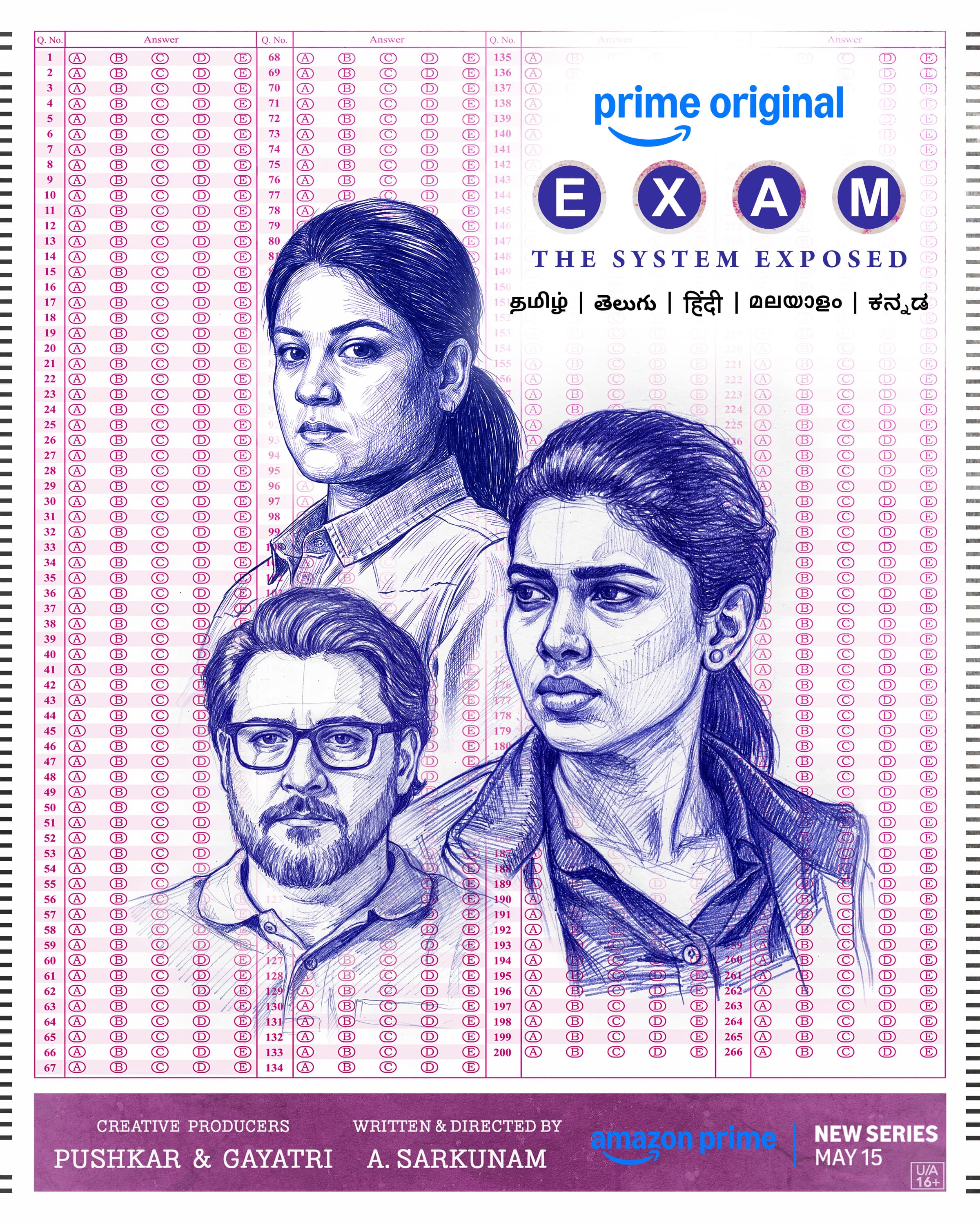 “Exam is a very timely and relevant story that captures the emotional intensity of competitive exams and masterfully transforms it into a thrilling high-stakes drama. We believe it is a story that will resonate deeply with millions. It’s a privilege to once again collaborate with Pushkar and Gayatri after the success of Suzhal—The Vortex season 1 and 2, and Vadhandhi—The Fable of Velonie. We are excited to bring this story to our customers across the world on May 15,” said Nikhil Madhok, Director & Head of Originals, Prime Video, India.