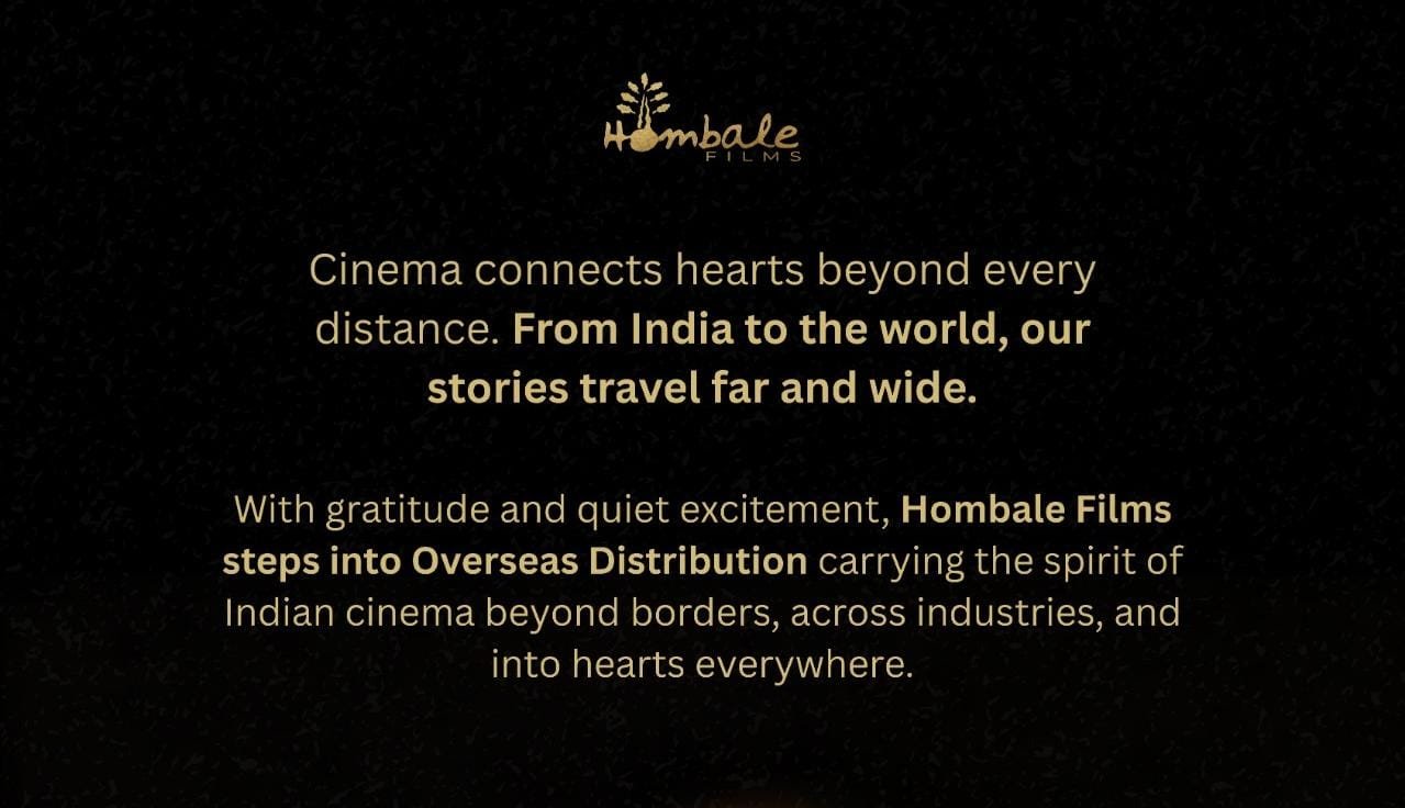 By stepping into overseas distribution, Hombale Films strengthens its commitment to expanding the global footprint of Indian cinema bringing it closer to viewers in every corner of the world.