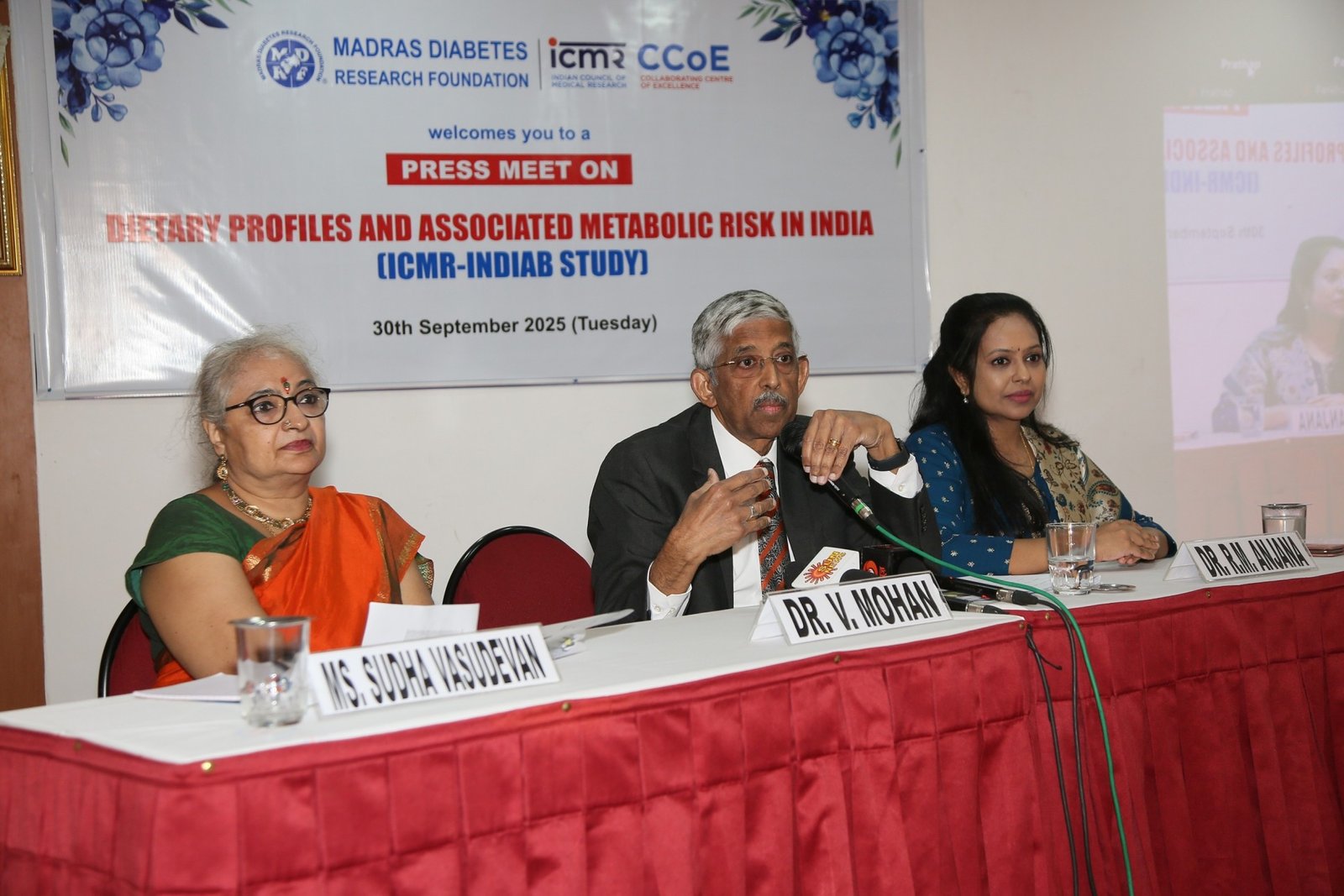 Chennai, 30th September 2025: According to the latest evidence generated from the Indian Council of Medical Research-India Diabetes (ICMR-INDIAB) study published in Nature Medicine, India’s rapidly changing eating habits are fueling dramatic rises in diabetes and obesity. The cross-sectional survey was conducted in collaboration with Madras Diabetes Research Foundation (MDRF), and included a nationally representative sample of 1,21,077 Indian adults from urban and rural areas of 36 states, union territories and the National Capital Territory (NCT)-Delhi. Detailed dietary data from every fifth participant, was used to characterize India’s dietary profile across regions and examine inter- and intra-regional differences in macronutrient intakes and associated metabolic risk.