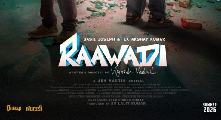 “Raawadi” starring Basil Joseph and L.K. Akshay Kumar in the lead roles, produced by S.S. Lalit Kumar of Seven Screen Studio, is simultaneously made in Tamil and Malayalam with the same title. The production team has announced that the film’s shooting is briskly progressing as planned.