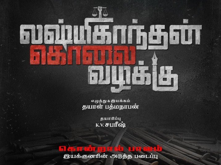 Under the banner of 2M Cinemas, K.V. Shabareesh produces the film “Lakshmikanthan Kolai Vazhakku” (The Lakshmikanthan Murder Case), and the title look of the film has been officially released.